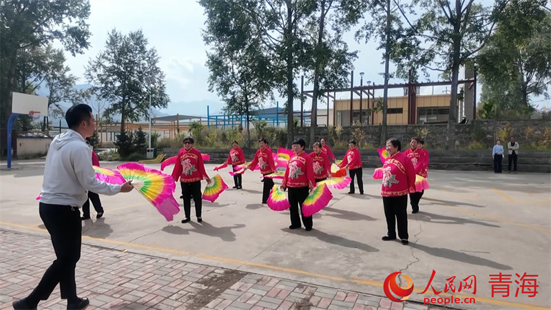 “扇子打开,正视前方,乐队老师准备……”走进青海省西宁市湟源县日月藏族乡,兔儿干村广场上,市级文化特派员赵佳新正手持折扇,耐心地纠正着村民的舞蹈动作。