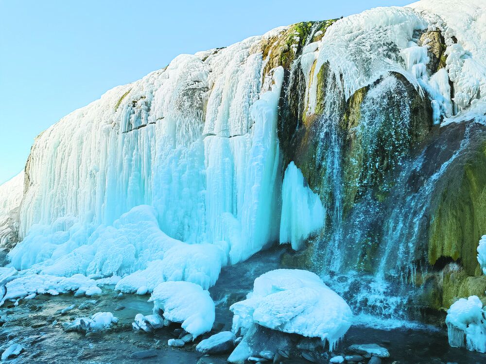 ¡¡¡¡´Ó¸Úʲ¿¨Ñ©·å°ëɽÑü£¬¼ÌÐøÏòǰ×ß¼¸Ê®Ã×£¬ÎÅÃûåÚåÇµÄÆß²ÊÆÙ²¼Ó³ÈëÑÛÁ±¡£Æß²Ê±ùÆÙ¸ßÔ¼10Ã×£¬³¤Ô¼200Ã×£¬¾§Ó¨ÌÞ͸µÄ±ù¾§Ö®¼ä£¬´©²å×Å»ÆÉ«¡¢ÂÌÉ«µÈ²»Í¬ÑÕÉ«µÄ¸Æ»¯ÑҲ㣬¶¬ÈÕůÑôÏ£¬·Â·ðÉÁ¶¯×ŵãµã²ÊÉ«¹ââ¡£