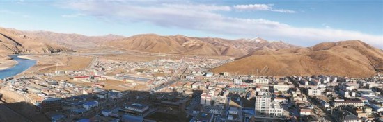 鸟瞰地处黄河源头的达日县,交通便利、文化繁荣、旅游兴旺,现代化气息扑面而来。