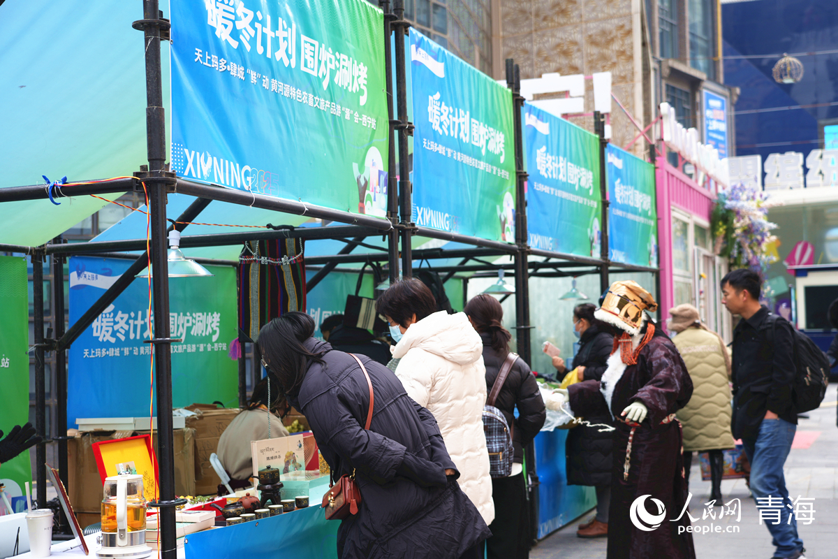 西宁市民了解玛多特色农畜、文创产品。人民网记者 杨启红摄