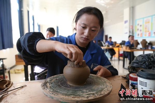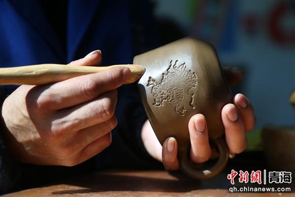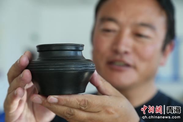 7月15日,在班玛黑陶培训及体验中心,非物质文化遗产代表性项目代表性传承人谢格太正在展示刚刚烧制出来的黑陶。青海省果洛藏族自治州班玛县是我国黑陶产地之一,现已传承了600多年,至今仍以纯手工方式完整传承着古老的制作技艺。黑陶的制作过程需经历和泥、成型、烧制等12道传统工序,2017年被评为青海省省级非物质文化遗产。