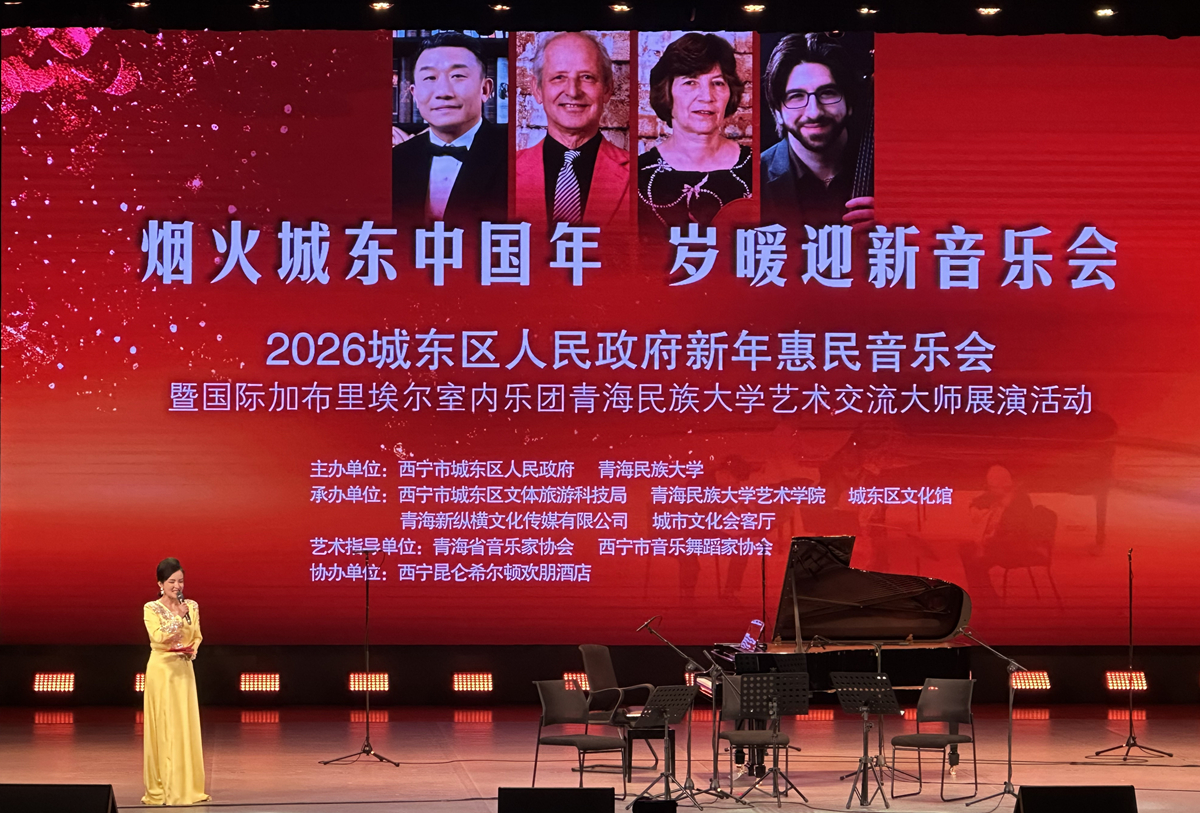 人民网西宁1月6日电 为丰富冬春文旅供给、满足群众精神文化需求,2026年1月5日,由西宁市城东区人民政府、青海民族大学联合主办的“烟火城东中国年——岁暖迎新音乐会”在青海民族大学举办。活动以高品质文化服务为抓手,将特色音乐演出送到群众身边,为辖区冬春文旅市场注入了鲜活活力,也让辖区百姓在家门口体验到了多元的音乐文化魅力。
