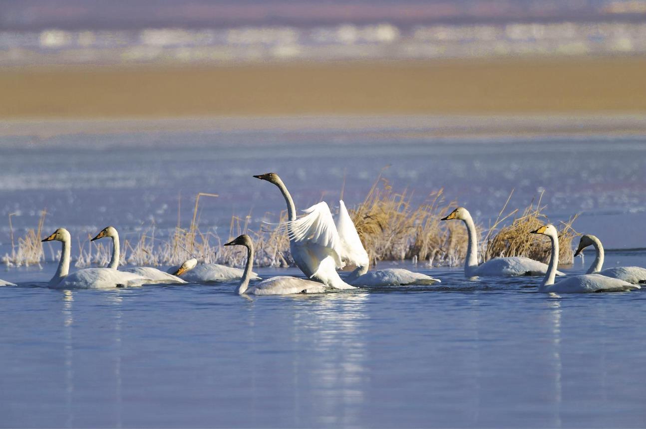 “湖面看着是冻住了,可入湖口那片活水,热闹着呢。”金泰安举起望远镜,熟练地辨认着远处朦胧的影子,“大天鹅、白骨顶、绿头鸭……天越冷,越不能让它们受惊扰。”数鸟、巡护、记录,是金泰安七年来重复却不厌倦的日常。