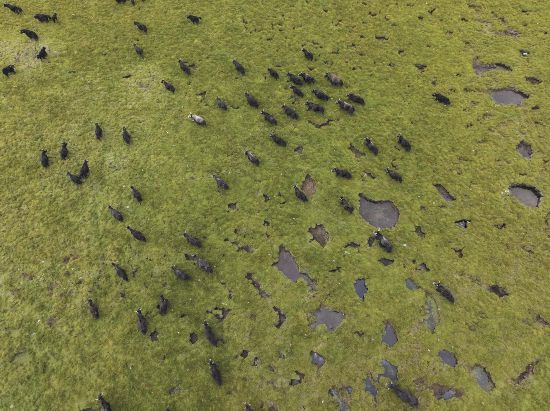 治多草甸上,牦牛群如移动的风景。青海日报记者 马振东 肉旦尖措 摄