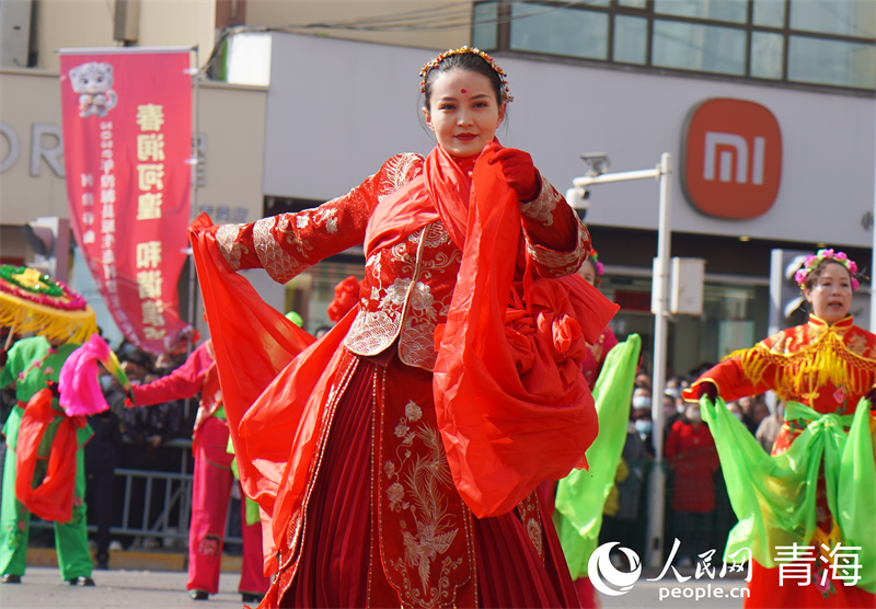 湟源社火巡演节目《花轿迎春乐丰年》。人民网 马可欣摄