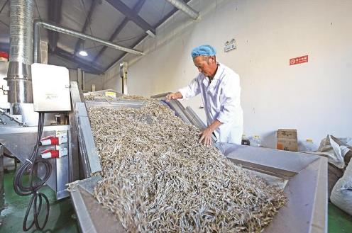 “以前捕捞全靠人工分拣,现在有了标准化加工线,效率快了好几倍。”在湖畔的加工车间,加工厂员工陈克云指着百米长的晾晒网介绍,“现在每天能处理1万多斤鲜鱼,经过清洗、筛选、晾晒全流程后,再通过这台机器自动烹炸。”更让他兴奋的是新引进的单冻机,“过去碰上雨天就犯愁,现在鲜鱼进机器10分钟就能冷冻,全年都能供货。”目前,合作社的小银鱼已形成“炸销+冷冻+初加工”多元销售模式,其中6厘米以上的大鱼每斤能卖到32元,产品直供湖南岳阳、四川成都等地的水产加工企业。