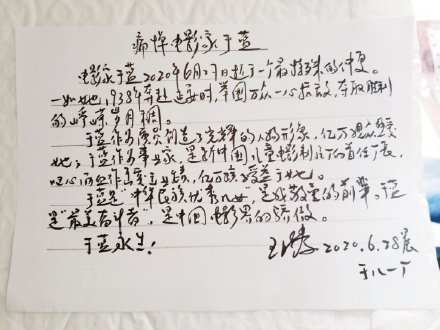 6ÔÂ28ÈÕÁ賿£¬µ¼ÑÝÌï׳׳ÔÚÅóÓÑȦ·¢Îijơ°ÂèÂè×ßÁË¡¡¡±£¬Ö¤ÊµÖøÃûµçÓ°±íÑÝÒÕÊõ¼ÒÓÚÀ¶ÀëÊÀ¡£ÔÚÊýÊ®ÄêµÄµçÓ°ÉúÑÄÖУ¬ÓÚÀ¶ËÜÔìÁË¡°½½ã¡±¡°ÖÜÁ«¡±¡°³ÌÄï×Ó¡±µÈ¾µäÒøÄ»ÐÎÏó£¬Îª¸ïÃüÎÄÒÕºÍÖйúµçÓ°ÊÂÒµ·îÏ×ÖÕÉí¡£ÓÚÀ¶´ÇÊÀµÄÏûÏ¢Ò»¾·¢²¼£¬Òý·¢ÑÝÒÕ½çÈËÊ¿ºÍÍøÓѵ¿Äî¡£