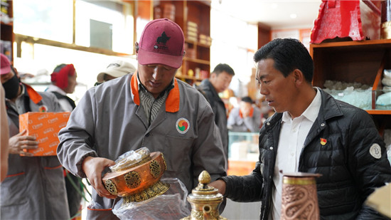 桑旦兰周向记者介绍甘达村家庭小作坊生产的产品 陈安阳 摄
