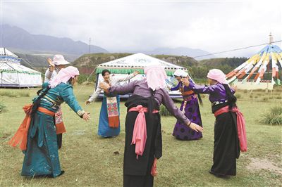 郭米村被誉为“歌舞名村”和“射箭之乡”,图为郭米村村民表演非遗项目则柔。本报记者 李庆玲 摄