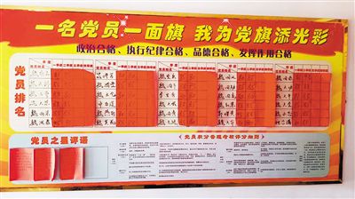 平安区古城回族乡木场村党支部实行党员积分制管理。图为党员积分管理活动公示栏。 通讯员 王文甲 韩世花 摄