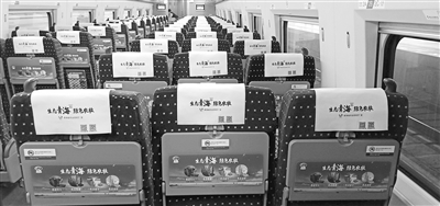 ¡¡¡¡³ýÁ˸ßÌúÍⲿ³µÉíµÄ¹ÚÃû£¬±¾´ÎÁгµÄÚµÄС×À°å¡¢Í·Õí½í¡¢ÐÐÀî¼Ü²ÊÌù¡¢º£±¨¡¢²£Á§ÃÅÌù¡¢ÓïÒô²¥±¨¡¢ÅÜÂíÆÁµÈ¶¼ÄÜ¿´µ½¡¢Ìýµ½ÎÒÊ¡êóÅ£¡¢²ØÑò¡¢Çàïý¡¢ÓͲËËÄÖÖÇàº£ÌØÓÅÅ©²úÆ·Æ·ÅÆÐû´«µÄͼƬºÍ±êÓï¡£