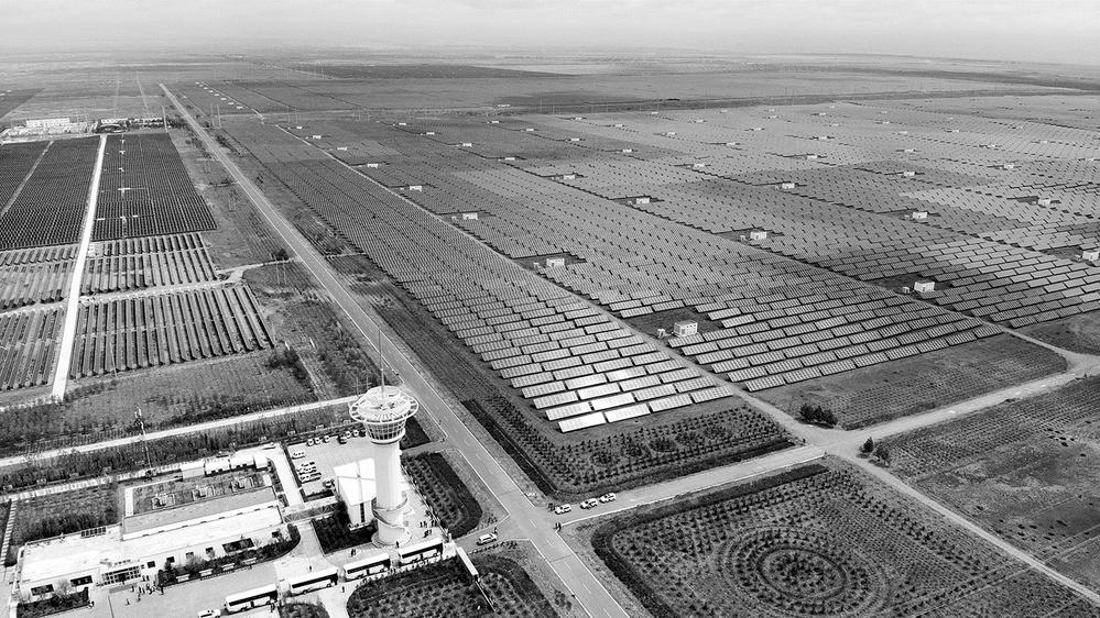 ˵°Õ£¬¸úËæËÎɽïÀ´µ½ËþÀ̲£¬Õ¾ÔÚ×ÓÕó(һƬƬ¹â·ü°å×é³ÉµÄÁ¬Æ¬)ÖУ¬ÔٴθÐÊÜÕâ±ß¡°À¶º£¡±É¢·¢µÄ¹ââ¡£Ëû˵£¬±ð¿´ÏÖÔÚ×ÓÕóÀïµÄ¹¤×÷ÈËÔ±²»¶à£¬µ«ÊǸ߷åÆÚʱ£¬Ã¿Ìì×î¶àÓаËǧ¶àÈË·ÖÉ¢ËÄ´¦£¬ÆëÐÄÐÁ¦£¬Ö»ÎªÀ©´óÕâÆ¬¡°º£¡±µÄÃæ»ý£¬Ôö¼Ó×·¹âÁ¿¡£