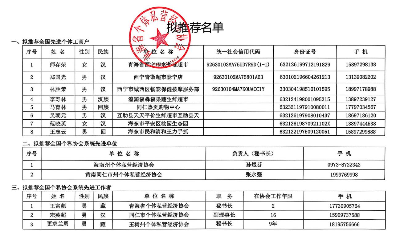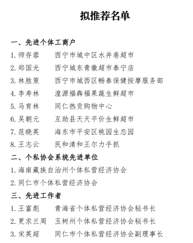 青海省“三先”工作推荐名单公示