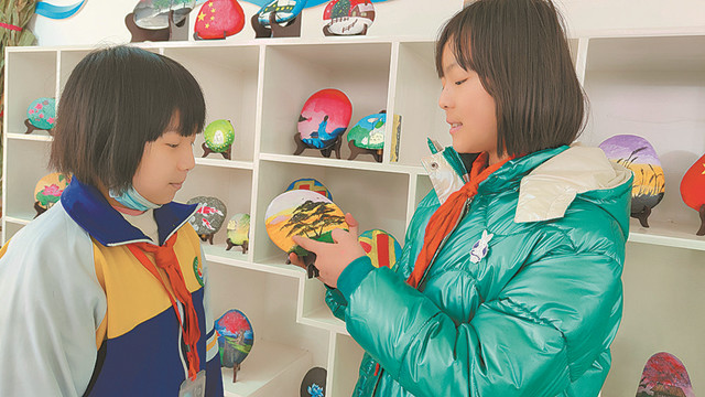 坐落在黄河谷地的高原小镇群科有丰富的黄河石资源。为丰富校园文化生活,通过黄河石感悟自然,海东市化隆回族自治县思源小学充分挖掘并利用黄河石资源,通过全体师生采集黄河原石,在石头上题字写诗、绘制山川人物及56个民族卡通画等,让孩子们品鉴黄河石文化的同时,将爱国情怀、绘画技术等有机融合,于润物细无声中达到立德树人的良好效果。