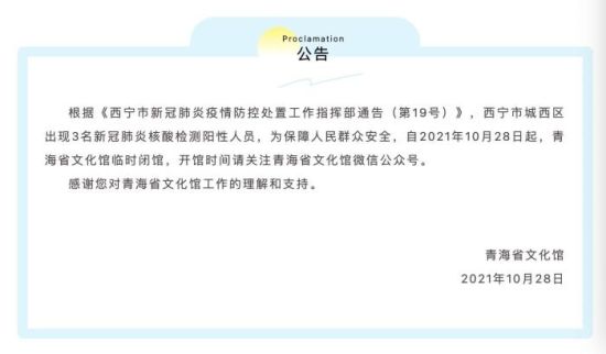 同时,青海省文化和旅游厅要求青海各市州文旅部门要加强重点公共文化服务场所和娱乐场所的疫情防控检查,剧院等演出场所、博物馆、公共图书馆、文化馆(站),以及娱乐场所、上网服务场所等空间相对密闭场所要合理设置人员接待上限,强化卫生管理,加强通风消毒;对进入场所人员严格落实扫码、测温、规范佩戴口罩等防控措施;尽量减少举办聚集性活动,室内文化和旅游活动场所要按照属地疫情防控部署要求,该限流的限流、该暂停的暂停、该关闭的关闭。