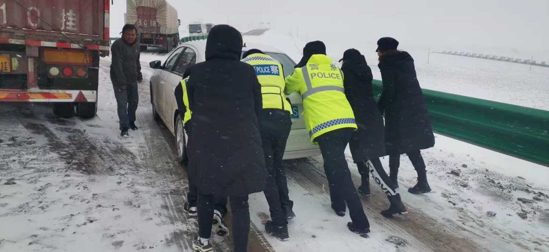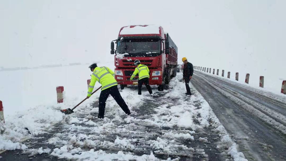 但那一夜,也很温暖。许多司机给他们送来食物,有的还主动拿来棉衣,在漫天风雪中,推车的号子声此起彼伏,激荡着大家的心声。今年33岁的王饰堂来自甘肃武威,这也是他来到峨堡中队后的第一场“硬仗”,现在回想起来,他打趣道,那也是我职业生涯的第一次“高光时刻”。