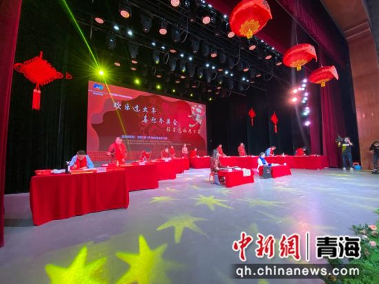 中新网青海新闻1月19日电 (记者 李江宁)17日,青海“欢乐过大年 喜迎冬奥会 群星送福进万家”网络直播第二场网络送春联活动在青海省文化馆群星剧场开播。此次活动计划送出书法作品近3000幅,绘画作品200余幅,剪纸作品近千幅,全国各地群众进入直播间拨打热线电话、留下有效地址即可获得春联、剪纸等。