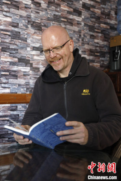 旅居中国22年的英国插画师万哲生(Jason Pym)近日接受中新社记者采访。 中新社记者 李嘉娴 摄