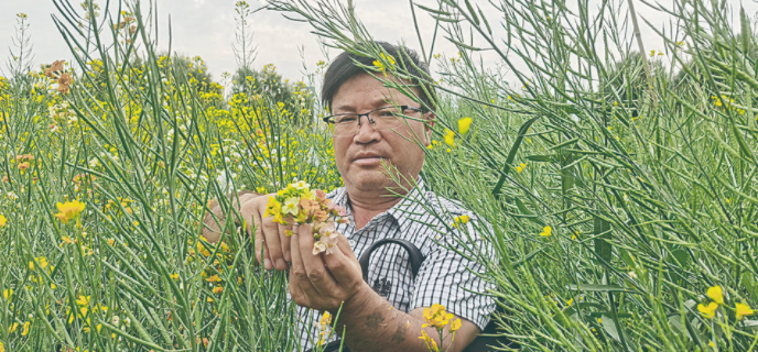 “油菜与萝卜、二月兰、紫罗兰等同属十字花科,与这些物种花色多样性相比,油菜花花色单一,历来没有彩色花。”从事研究油菜二十多年,唐国永以前零星地见过白色油菜花,但真正意义上的彩色油菜花是最近七八年培育的。