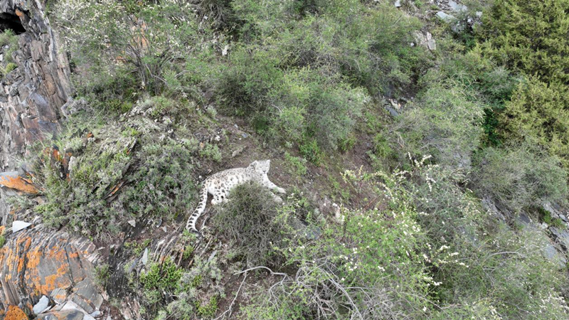 夏日的三江源头绿意盎然,“大自然摄影队”队员公尕日近日在青海省玉树州曲麻莱县巴干乡巡山时,发现了一只正在休憩的雪豹并及时记录下它的英姿。“现在有时候每周能碰到三四次雪豹。”近年来,随着三江源地区生态环境的改善,作为青藏高原的旗舰物种,雪豹在三江源国家公园频频现身。