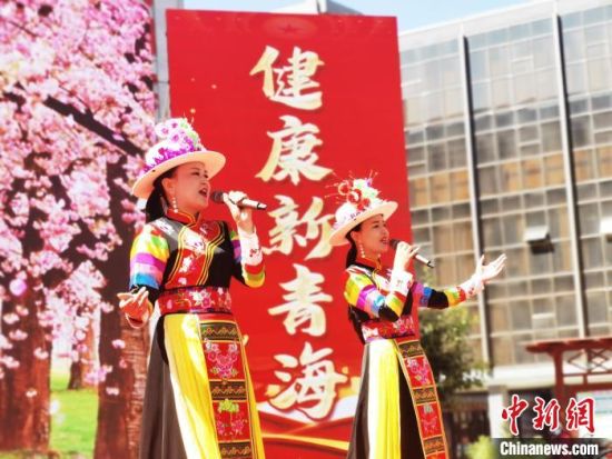 图为“花儿”歌手以艺术形式传播健康理念。 张添福 摄