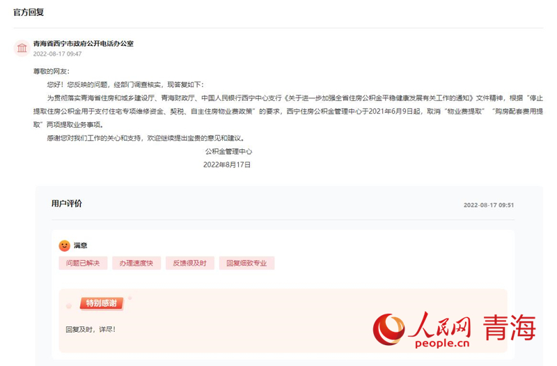 ×Ô2021Äê7ÔÂÆð£¬ÈËÃñÍø¡°Áìµ¼ÁôÑ԰塱Çຣ°æ¿éÂ½ÐøÊÕµ½ÊýÌõÍøÃñÁôÑÔ·´Ó³£¬ÍùÄêÎ÷ÄþÊÐÃñ¿Éͨ¹ý¡°Î÷Äþס·¿¹«»ý½ð¹ÜÀíÖÐÐÄ¡±Î¢ÐÅÆ½Ì¨¡¢Çàº£ÒøÐй«»ý½ð°ìÀí´°¿Ú¡¢Î÷Äþס·¿¹«»ý½ð¹ÜÀíÖÐÐİìÀí´°¿ÚµÈ;¾¶°ìÀíÎïÒµ·ÑÌáȡҵÎñ£¬µ«2021Äê7ÔÂÒÔºóÈ´±»¸æÖª²»ÄܰìÀí¡£