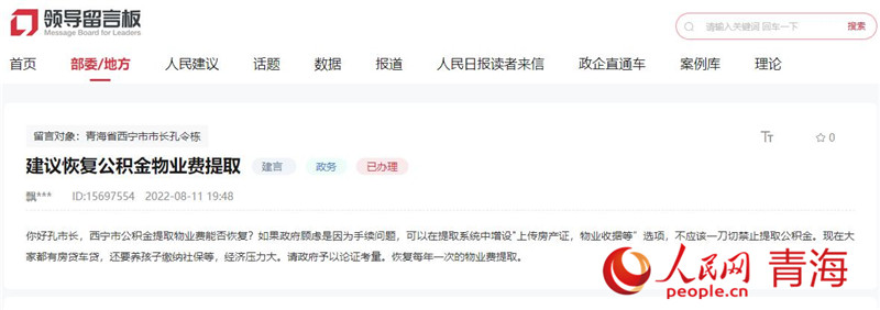 ÆäÖУ¬2022Äê8ÔÂ12ÈÕ£¬ÍøÃñÁõÏÈÉúÔÚÈËÃñÍø¡°Áìµ¼ÁôÑ԰塱ÁôÑÔ±íʾ£¬½¨Òé»Ö¸´¹«»ý½ðÎïÒµ·ÑÌáÈ¡£º¡°ÏÖÔÚ´ó¼Ò¶¼Óз¿´û³µ´û£¬»¹ÒªÑøº¢×Ó½ÉÄÉÉç±£µÈ£¬¾¼ÃѹÁ¦´ó¡£¡±