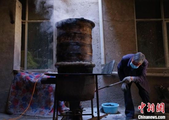 刘世功则是掌握火候的“老手”。“我今年73岁,自记事起,家里每逢八月十五做月饼时,就是男的负责烧火,说起来我也烧了60多年的火了,青海传统蒸笼月饼需要的是大火,听上一辈人说,火烧得越旺,日子越红火。”