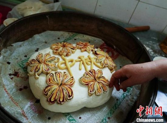 图为已用面花点缀好的青海传统蒸笼月饼。 马铭言 摄