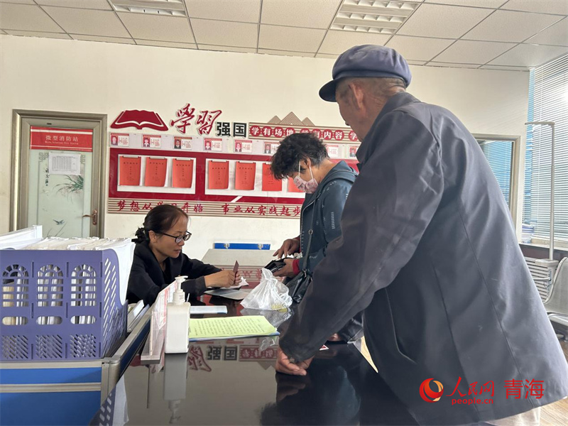 穿上红马甲,佩戴好党徽,秦小红带着党员干部们朝刘守信家走去。“前几天我就听说刘守信提了解决工作的需求,我们也纳入了‘双报到’机制,这不,海西州气象局党支部便接了这条单。”