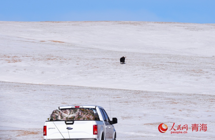 巡山途中遇到野牦牛。人民网记者 甘海琼摄