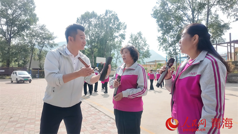 “扇子打开,正视前方,乐队老师准备……”走进青海省西宁市湟源县日月藏族乡,兔儿干村广场上,市级文化特派员赵佳新正手持折扇,耐心地纠正着村民的舞蹈动作。