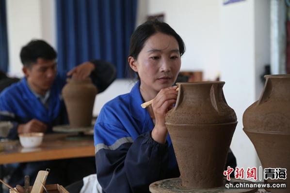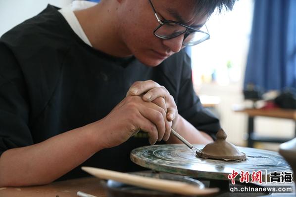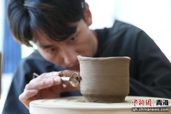 7月15日,在班玛黑陶培训及体验中心,非物质文化遗产代表性项目代表性传承人谢格太正在展示刚刚烧制出来的黑陶。青海省果洛藏族自治州班玛县是我国黑陶产地之一,现已传承了600多年,至今仍以纯手工方式完整传承着古老的制作技艺。黑陶的制作过程需经历和泥、成型、烧制等12道传统工序,2017年被评为青海省省级非物质文化遗产。