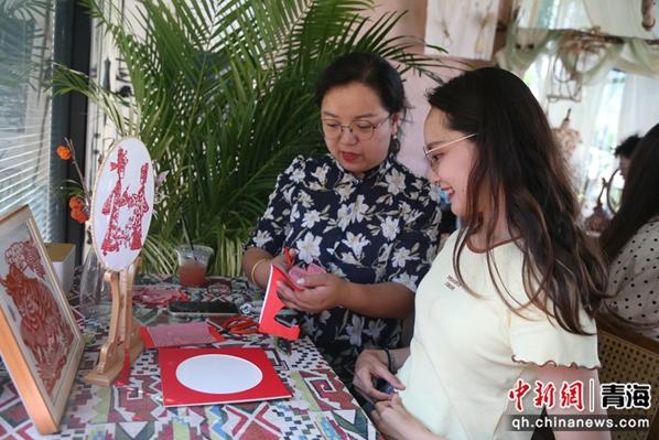 8月9日,在青海省西宁市举办的“西海2261·河湟文化大集”活动上,民众沉浸式体验剪纸、堆绣、皮影制作等传统非遗技艺,近距离感受独特民族文化魅力。