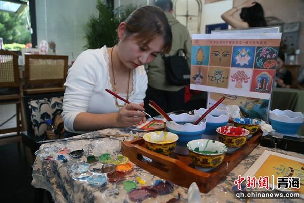 图为民众体验唐卡绘画技艺。张忠苹 摄