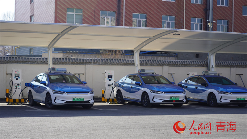湟源县交通运输综合行政执法局内的新能源充电桩。人民网 马可欣摄