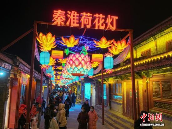 图为“宁宁协作·合源和美”第三届青海丹噶尔双宁双灯展暨第40届中国·秦淮灯会丹噶尔古城分会场内,秦淮荷花灯展出。 马铭言摄