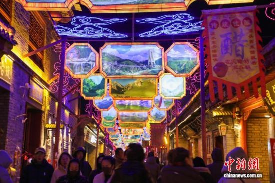图为“宁宁协作·合源和美”第三届青海丹噶尔双宁双灯展暨第40届中国·秦淮灯会丹噶尔古城分会场内,湟源排灯展出。 马铭言摄