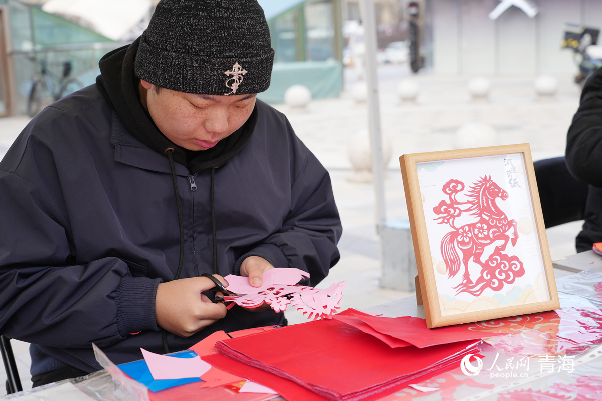 现场同步开放的“小年风物集”非遗与手作体验区吸引众多市民驻足参与。剪窗花、写春联、绘糖画、捏面塑、编织手指围巾、品鉴青海特色花馍等项目广受欢迎。一旁的“游戏互动区”更是笑语连连,“跳跃投掷”“一心二用拍球翻碟”“爱的魔力转圈圈”等趣味挑战吸引全龄段人群参与,完成即可兑换精美小礼品,邻里情谊在互动中持续升温。