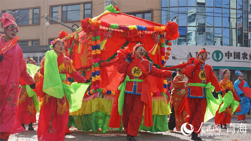 湟源社火巡演节目《花轿迎春乐丰年》。人民网 马可欣摄