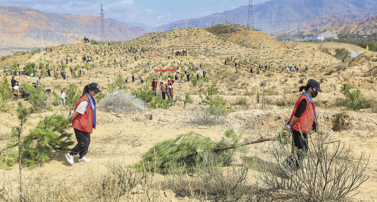 4月14日,黄南州植树活动现场。 通讯员 张海麟 摄