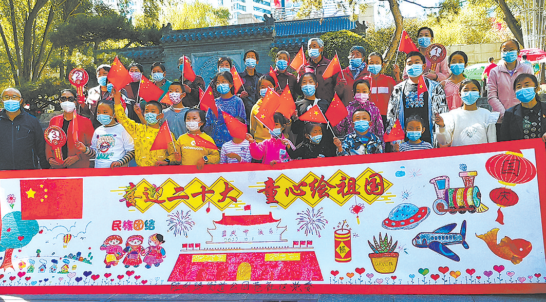 在开展全员核酸检测之前,黄南藏族自治州卫生和健康委员会组织开展了以“喜迎二十大欢度国庆节”为主题的升旗仪式活动。望着院内悬挂的一面面迎风招展的五星红旗,黄南藏族自治州卫生和健康委员会党组书记、主任史冬芸说:“作为人民群众健康的守护者,我们要不断厚植红色基因和爱国意识,以实际行动推动全州卫生健康事业高质量发展,以斗志昂扬的精神风貌迎接党的二十大胜利召开。”