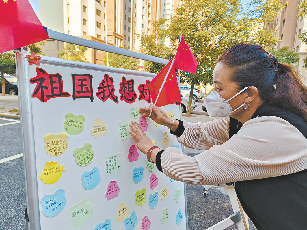 “祝福墙”上寄语满满。西宁市城中区南川西路街道安宁路社区供图