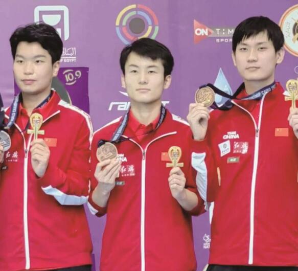 ÁõÑÓ²ý(ÖÐ)Óë¶ÓÓÑÔÚÇàÄêÄÐ×Ó10ÃׯøÊÖǹÍÅÌå±ÈÈüÖлñµÃÍÅÆ¡£Í¼Æ¬ÓÉÇຣʡÌåÓý¾ÖÌṩ