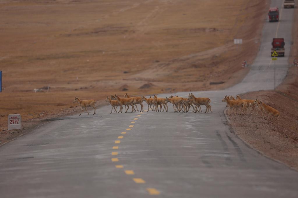¡¡¡¡Í¼ÎªÒ»Èº´ÆÐÔ²ØÁçÑòǨáãͨ¹ý109¹úµÀ¡£(ÊÜ·ÃÕß¹©Í¼)