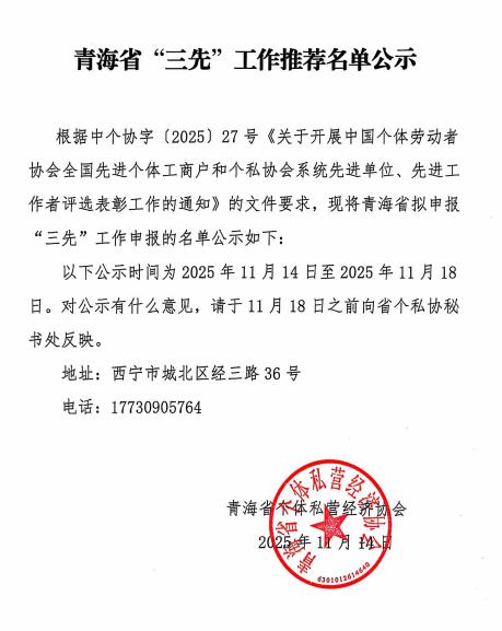 青海省“三先”工作推荐名单公示