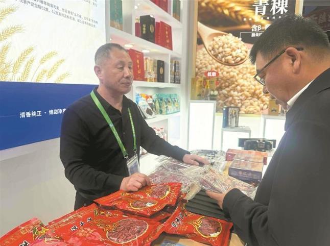离开三文鱼展位,来到“虹桥国际城市会客厅”展区的黑大麦茶展位前,热闹劲儿丝毫不减,淡淡的麦香顺着展台飘向四周,引得路人纷纷驻足。“这黑大麦茶喝着清香,不苦不涩,凉了之后也顺口,不管是自己喝还是做员工福利、节日礼品都合适,我们想引进一些!”听到客商的明确意向,公司负责人辛延俊赶紧递上产品手册,顺手拆开一包黑大麦茶,倒进透明玻璃杯里,冲上热水:“您再泡着观察下,咱们的黑大麦颗粒完整,泡开后能看到饱满的胚芽,水温降低后,麦香会更浓。”说着,他还拿出基地的实景照片给客商看,从播种、灌溉到收割、晾晒的场景一一呈现,让客商更放心地询问起供货周期和批发价格。